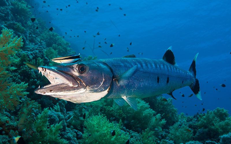 The Barracuda is an amazing ambush predator. The typical body colouration of a barracuda is one of dark green, silver, or gray – often with light blue on the back. They also take advantage of their countershading camouflage to sneak up on unsuspecting victims. This is why they can easily ambush their prey. Barracudas are not inherently aggressive but can be dangerous to humans because their sharp teeth can cause serious lacerations, and they may mistakenly attack people if they see shiny objects as prey or mistake snorkelers for large predators. Rarely, a barracuda attacks a human. There are no reports of unprovoked attacks, there are only incidents involving spearfishing. In fact, they unnervingly approach scuba divers following them as if they were other predators. Attacks are rare and often a result of poor visibility or confusion, but can be prevented by avoiding flashy jewelry, not attaching fish catch near you, and being cautious around large barracudas, especially in muddy waters. This long, tubular fish has a very pointed snout filled with two rows of teeth, and small fins set back towards its crescent caudal fin. It is a shiny blue-gray above, fading to silver and white below, usually with dark spots on its lower sides, and sometimes with faint darker bars on its upper side. This is a successful daytime ambush hunter that can burst in speeds up to 35 mph, and is a danger to humans because it will mistakenly attack shiny objects or fish caught on spears. It can grow to over 5 feet long and over 100 pounds.The world’s biggest barracuda ever caught was a 46.40 kg Guinean barracuda by Thomas Gibson in Angola in 2013, measuring approximately 2.03 meters (6 ft 8 in) long. While this is the official record holder, a much larger great barracuda was reported to be 2 meters (6.6 feet) long, although its weight is not consistently recorded. Only twenty eight species of barracuda are still in existence today. They all belong with the genus Sphyraena, which is the single surviving genera of the family Sphyraenidae. These fish have teeth like when they hold their prey the inward facing teeth keep the prey stuck and the other teeth are used to bite and chew. Having large eyes generally means they have excellent vision. In fact, barracudas rely on visual acuity to identify and ambush their victims – even in sunlit clear waters. Known for their long, torpedo-shaped bodies, razor-sharp teeth, and silvery-grey skin, these fish are locally called ‘Sheela’ in Malayalam, ‘Tonki’ in Konkani, ‘Jellow’ in Telugu, ‘Suruli kandai’ in Kannada, and ‘Seela/Ooli’ in Tamil. Being stereotypical opportunistic predators means these ray-finned saltwater hunters feed most on slow-moving fishes, even if they’re larger than themselves, such as:Anchovies, other barracuda Groupers Grunts Herrings Jacks Killifishes Snappers and even Tunas. These fish are savage ambush predators that attack when least expected like surprise attack. These are dangerous so you should not provoke them or wear anything shiny while scuba diving with them. Overall the Barracudas are Savage Creatures Of Mother Nature.